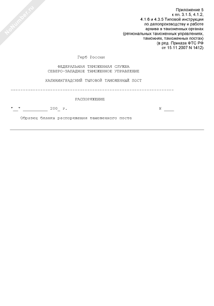 Образец бланка распоряжения таможенного поста со статусом юридического лица (рекомендуемый образец заполнения)