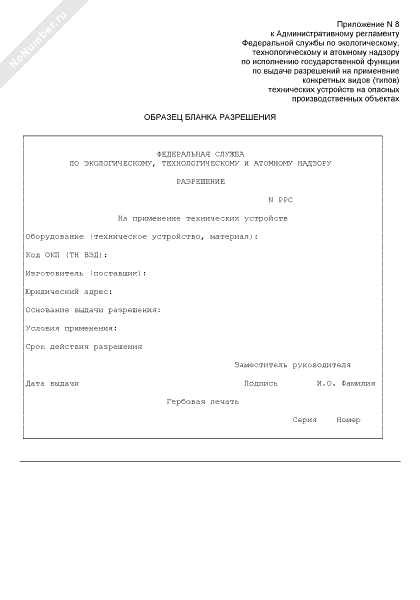 Образец бланка разрешения на применение конкретных видов (типов) технических устройств на опасных производственных объектах
