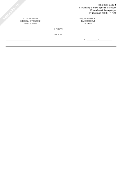 Образец бланка совместного приказа Федеральной службы судебных приставов и Федеральной таможенной службы (рекомендуемый образец заполнения)