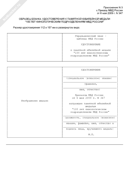 - Источник– Приказ МВД РФ от 06.05.2009 № 347