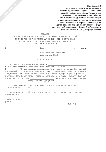 Образец формы запроса на подготовку справок, выписок и копий документов (в том числе архивных) префектуры ЮВАО города Москвы по вопросам, затрагивающим права и законные интересы заявителя