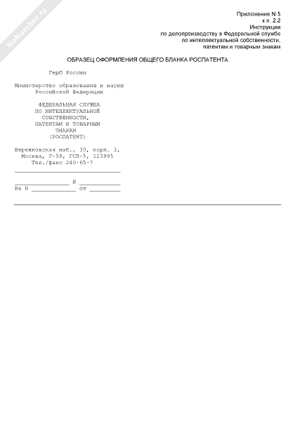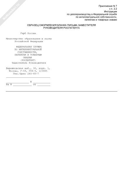 Образец оформления бланка письма заместителя руководителя Роспатента