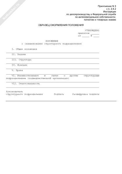 Образец оформления распоряжения Роспатента (рекомендуемый образец заполнения)