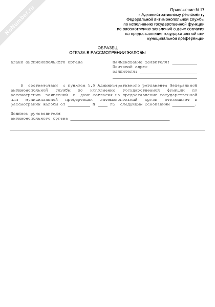 Образец отказа антимонопольного органа в рассмотрении жалобы (рекомендуемый образец заполнения)