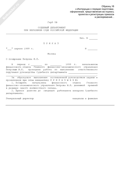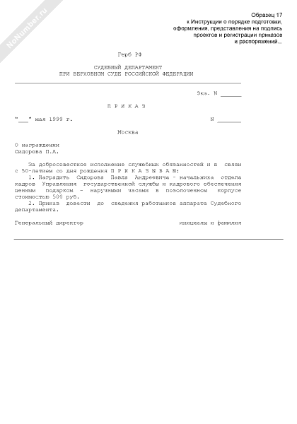 Образец приказа о поощрении работника (рекомендуемый образец заполнения)
