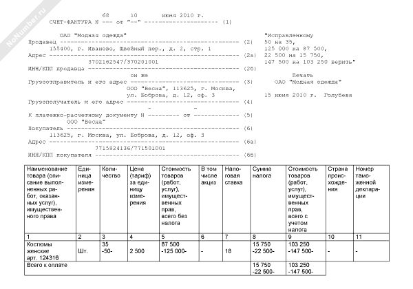 Образец счета для предприятия общественного питания (рекомендуемый образец заполнения)