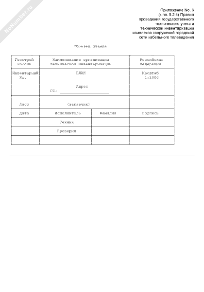 Образец штампа к плану расположения государственной сети кабельного телевидения (рекомендуемый образец заполнения)