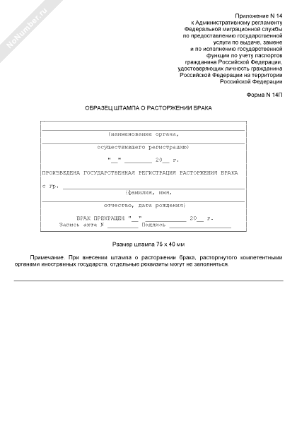 Образец штампа о расторжении брака. Форма № 14П