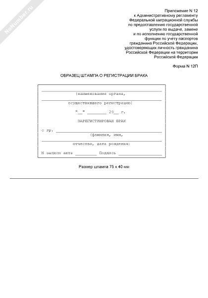 Образец штампа о регистрации брака. Форма № 12П