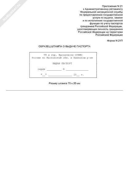 Образец штампа о выдаче паспорта. Форма № 21П