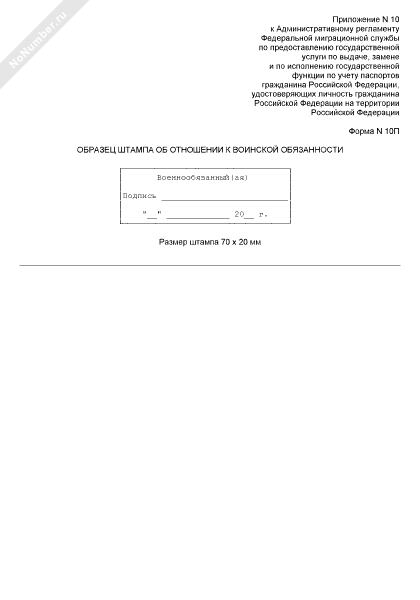 Образец штампа об отношении к воинской обязанности. Форма № 10П