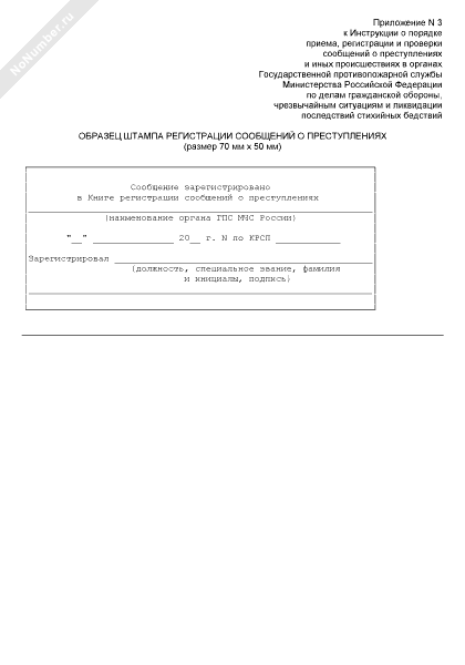Образец штампа регистрации сообщений о преступлениях