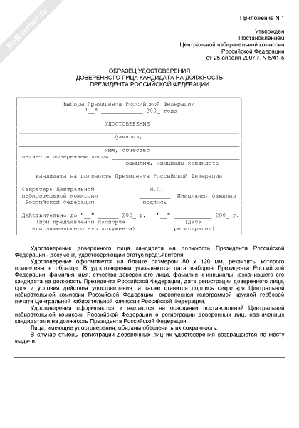 - Источник– Постановление Центризбиркома РФ от 25.04.2007 № 5/41-5