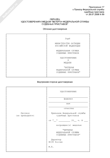 - Источник– Приказ ФССП РФ от 26.07.2006 № 89 (редакция от 02.10.2009 № 426)