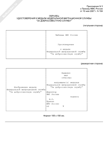 - Источник– Приказ ФМС РФ от 10.05.2007 № 104 (редакция от 30.11.2009 № 335)