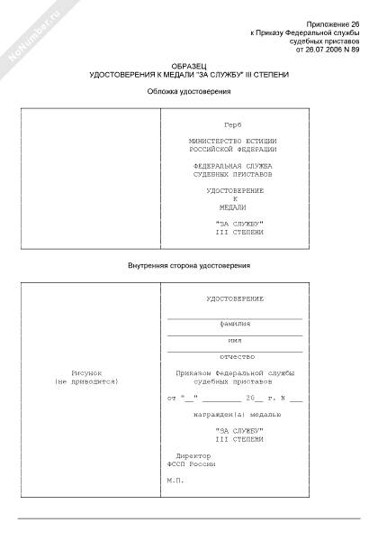 - Источник– Приказ ФССП РФ от 26.07.2006 № 89 (редакция от 02.10.2009 № 426)