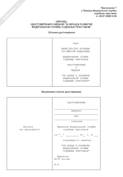 - Источник– Приказ ФССП РФ от 26.07.2006 № 89 (редакция от 02.10.2009 № 426)