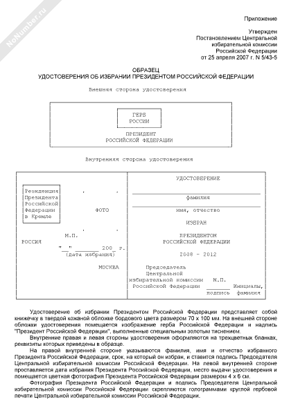 Образец удостоверения об избрании Президентом Российской Федерации