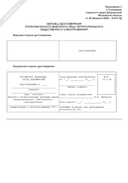Образец удостоверения уполномоченного выборного лица территориального общественного самоуправления городского округа Дзержинский Московской области (рекомендуемый образец заполнения)