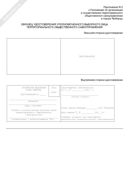 Образец удостоверения уполномоченного выборного лица территориального общественного самоуправления г. Люберцы Люберецкого муниципального района Московской области (рекомендуемый образец заполнения)