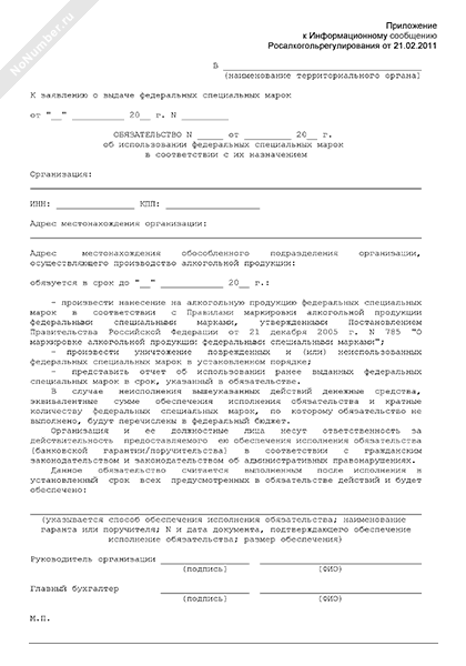 Обязательство об использовании федеральных специальных марок в соответствии с их назначением (рекомендуемый образец заполнения)