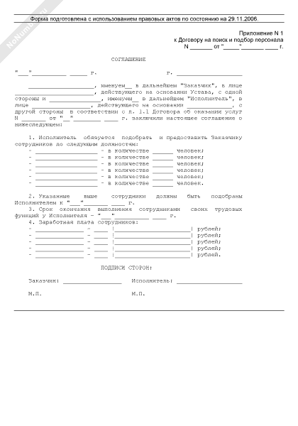 Обязательство об оказании услуг (приложение к договору на поиск и подбор персонала)
