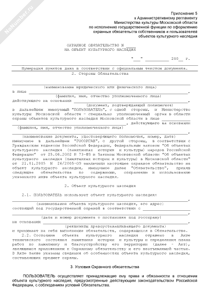 Охранное обязательство на объект культурного наследия (памятник истории и культуры), находящийся на территории Московской области