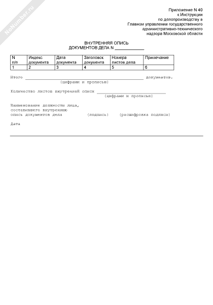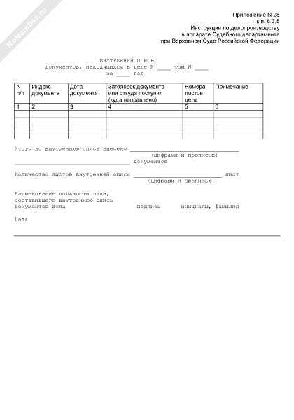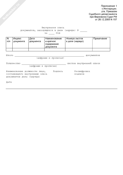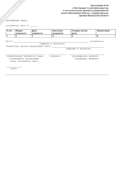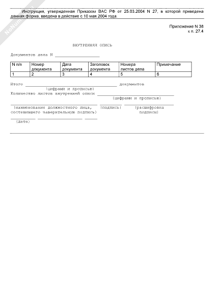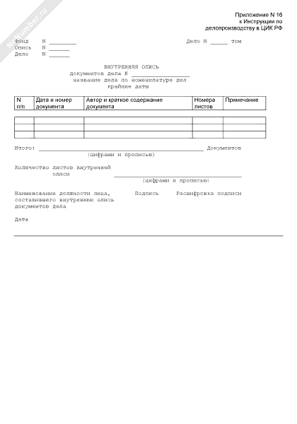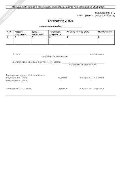 - 10Внутренняя опись (приложение к инструкции по делопроизводству)