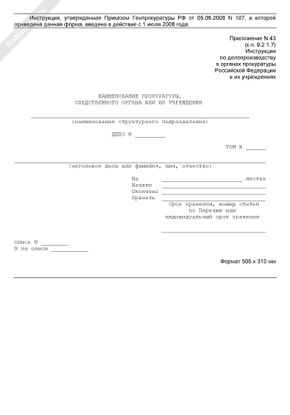 - 20Внутренняя опись дела, тома, заведенных в прокуратуре, следственном органе или их учреждении