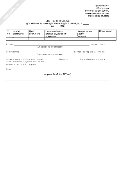 - 17Внутренняя опись документов, находящихся в деле (наряде) в архиве мирового судьи Московской области