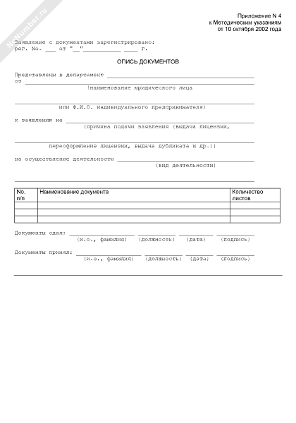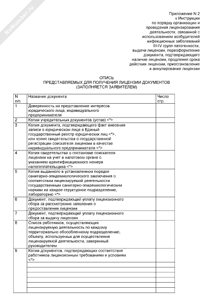 - 124Опись документов, представляемых для получения лицензии на деятельность, связанную с использованием возбудителей инфекционных заболеваний (заполняется заявителем)