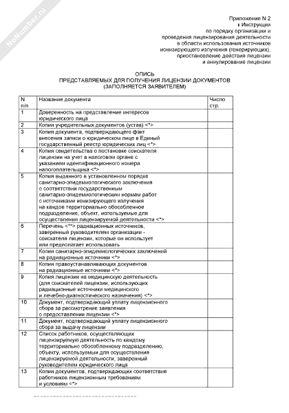 - 125Опись документов, представляемых для получения лицензии на деятельность в области использования источников ионизирующего излучения (заполняется заявителем)