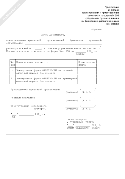 - 138Опись документов, представляемых кредитной организацией (филиалом кредитной организации) в Главное управление Банка России по городу Москве в составе отчетности по форме № 658 «Отчет об операциях по экспортным контрактам»