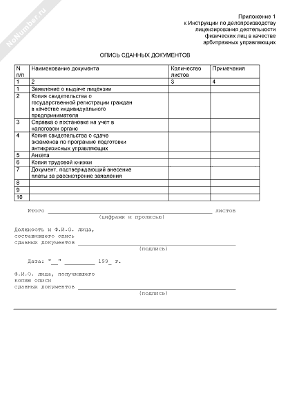- 139Опись документов, сданных соискателем лицензии арбитражного управляющего