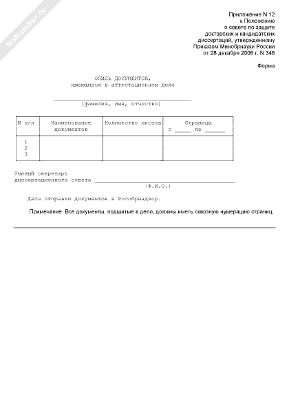 - 162Опись документов, имеющихся в аттестационном деле соискателя ученой степени кандидата (доктора) наук