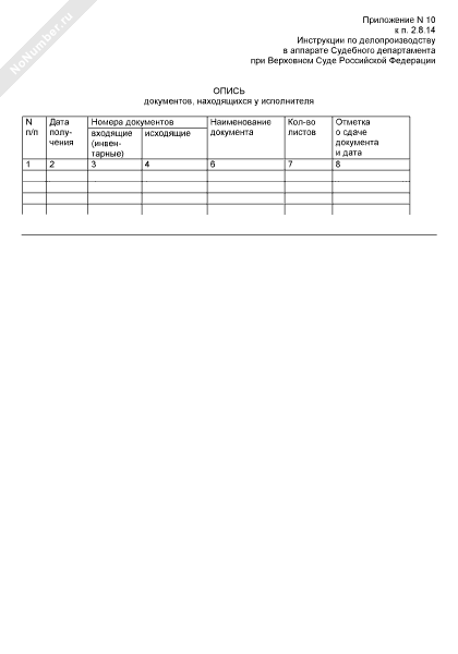 - 169Опись документов, находящихся у исполнителя в Судебном департаменте при Верховном Суде Российской Федерации