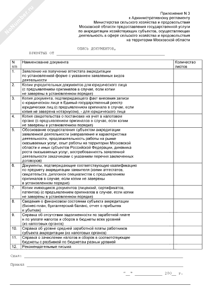 - 170Опись документов, принятых на получение аттестата аккредитации по аккредитации хозяйствующих субъектов, осуществляющих деятельность в сфере сельского хозяйства и продовольствия на территории Московской области