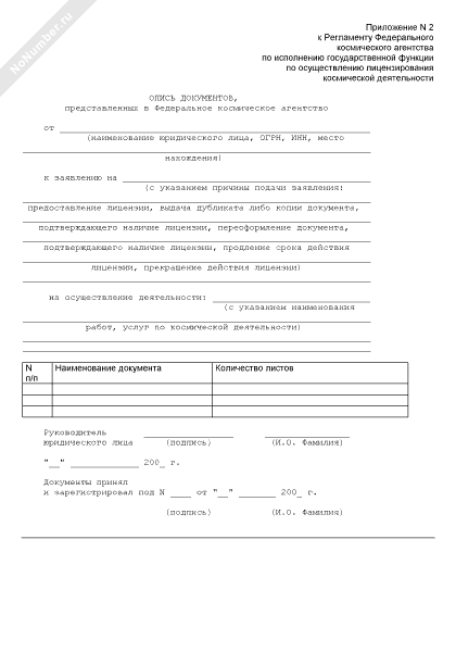 - 171Опись документов, представленных в Федеральное космическое агентство соискателем лицензии на осуществление космической деятельности