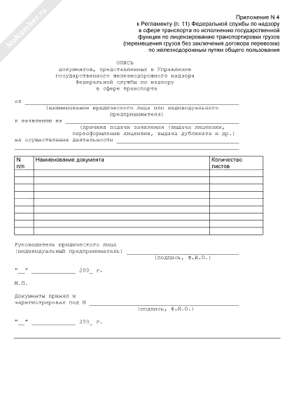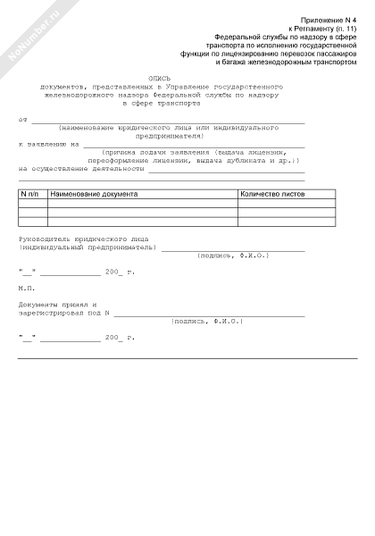- 180Опись документов, представленных в Управление государственного железнодорожного надзора Федеральной службы по надзору в сфере транспорта по исполнению государственной функции по лицензированию перевозок пассажиров и багажа железнодорожным транспортом