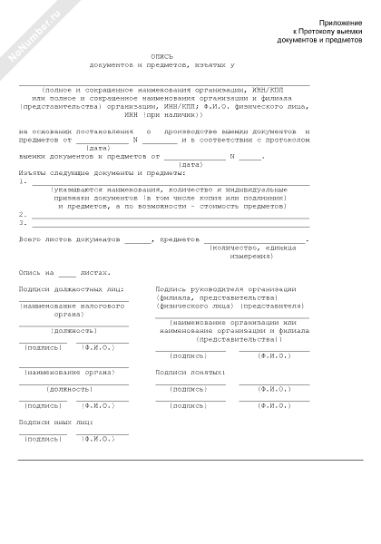 - 168Опись документов и предметов, изъятых у организации при проведении выездной налоговой проверки