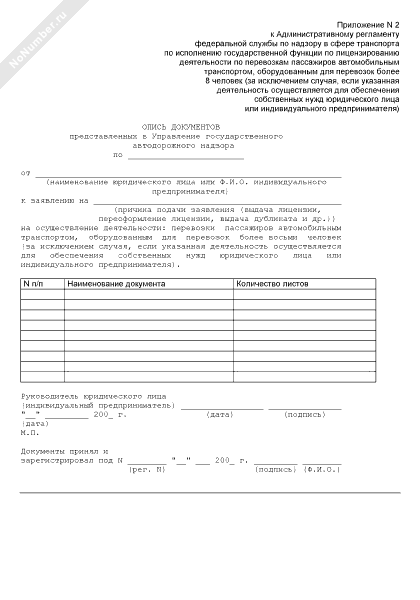 - 163Опись документов представленных в Управление государственного автодорожного надзора на осуществление перевозок пассажиров автомобильным транспортом, оборудованным для перевозок более восьми человек (за исключением случая, если указанная деятельность осуществляется для обеспечения собственных нужд юридического лица или индивидуального предпринимателя)