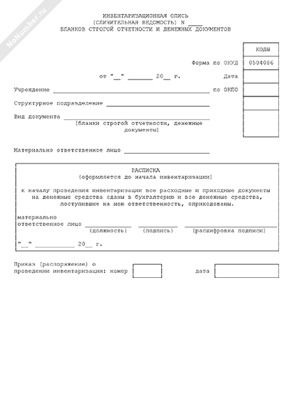 Инвентаризационная опись (сличительная ведомость) бланков строгой отчетности и денежных документов
