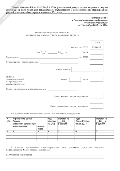 - Источник– Приказ Минфина РФ от 15.12.2010 № 173н