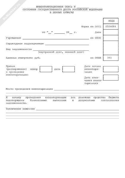 Инвентаризационная опись состояния государственного долга Российской Федерации в ценных бумагах (рекомендуемый образец заполнения)