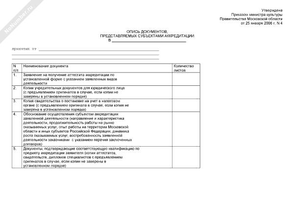 - Источник– Приказ Министра культуры Правительства МО от 25.01.2006 № 4