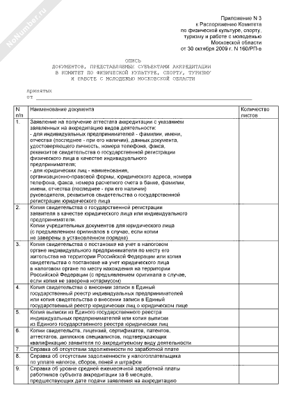- Источник– Распоряжение Комитета по физической культуре, спорту, туризму и работе с молодежью МО от 30.10.2009 № 160/РП-в