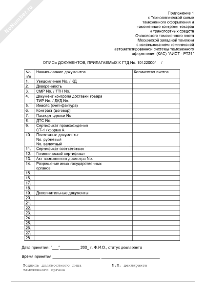 Опись документов, прилагаемых к грузовой таможенной декларации