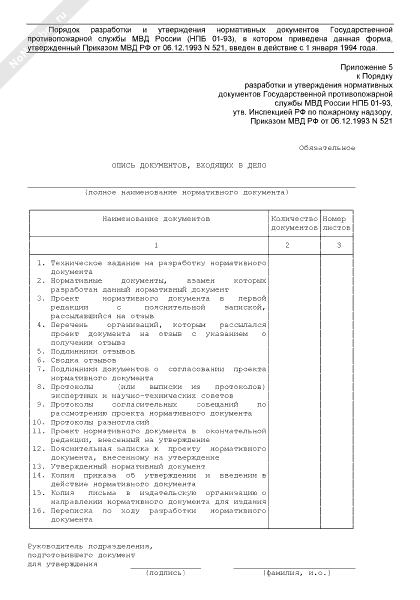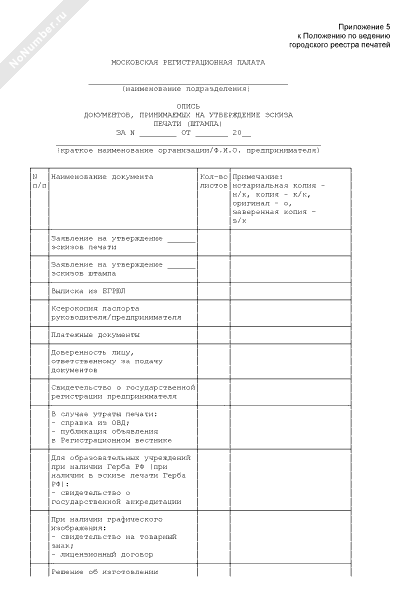 Опись документов, принимаемых на утверждение эскиза печати (штампа)