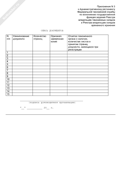 Опись документов к заявлению о включении в реестр таможенных складов (рекомендуемый образец заполнения)