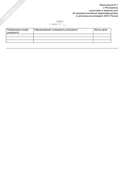 Опись к делу об административном правонарушении в центральном аппарате Федеральной антимонопольной службы России (рекомендуемый образец заполнения)